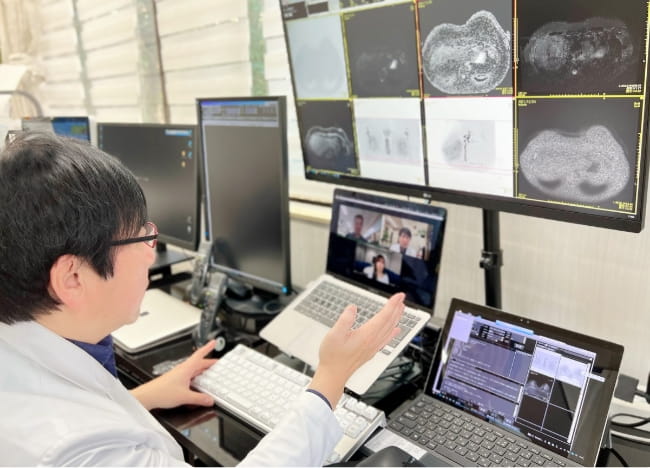 貴院に直接訪問して、テストスキャンを行い、画質を調整します。サービス開始後も、MRI装置への付着物やコイルの故障などにより画質は劣化しますので、診断時にわずかでも不良の兆候を見つけたら、本部から病院に連絡します。
